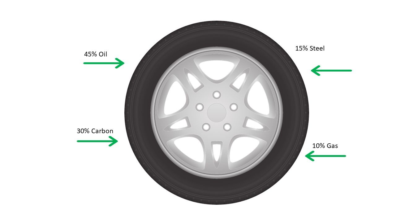 - Carbon is used for plastics, pigments, new tyres* production