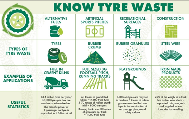 - Tyres can be used as fuel for cement manufacturing