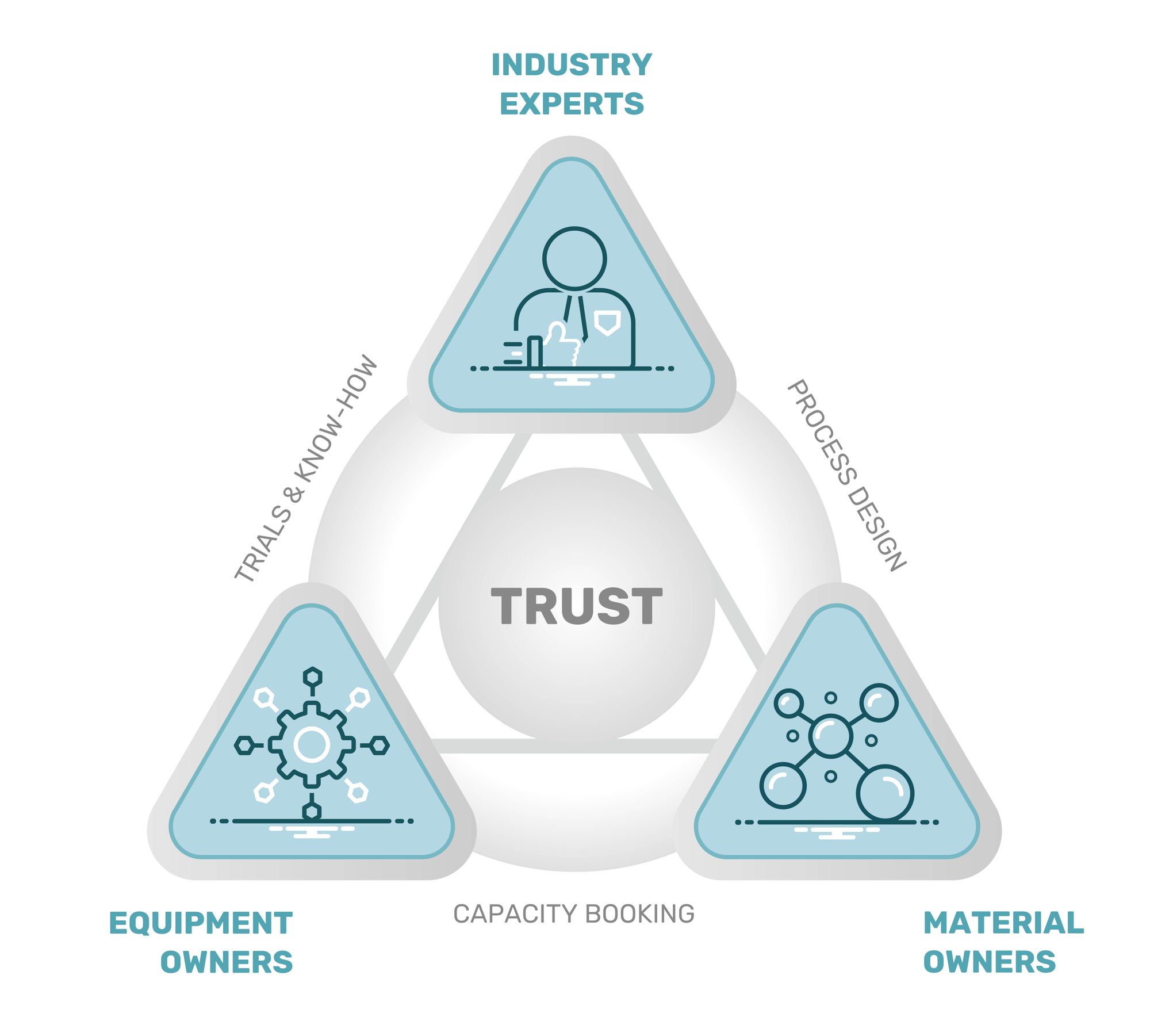 🔺 We enable the connections of very high value between material owner, system owners and industry experts. We create an atmosphere of trust, so that these relations may flourish and have a positive impact. We are facilitators for the exchange of ideas and technology.